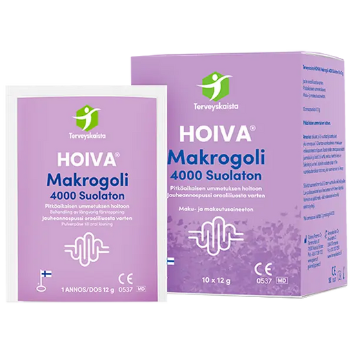 Katso kaikki tiedotTerveyskaista HOIVA® Makrogoli 4000 suolaton 10x12g