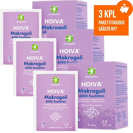 Katso kaikki tiedotTerveyskaista HOIVA® Makrogoli 4000 suolaton 10x12g 3 kpl PAKETTITARJOUS!