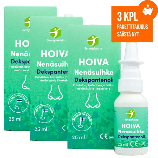 Katso kaikki tiedotTerveyskaista HOIVA® Dekspantenoli Nenäsuihke 25 ml 3 kpl PAKETTITARJOUS!