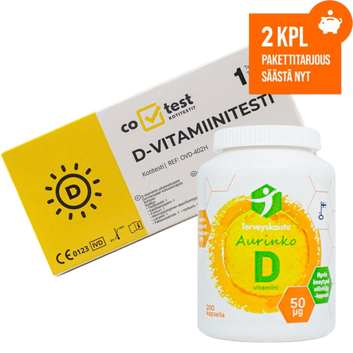 D-vitamiinitason tukipaketti on helppo ja selkeä kokonaisuus D-vitamiinitason tarkistamiseen ja tukemiseen osana omaa hyvinvointia. -- D-vitamiinit...