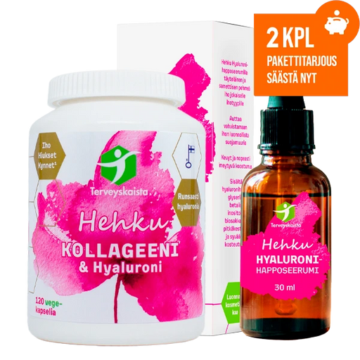 Hyaluroni-tehopaketti iholle yhdistää ihonhoidon sisältä ja ulkoa. -- Hyaluroni-tehopaketti iholle! Hyaluroni-tehopaketti iholle yhdistää ihonhoido...