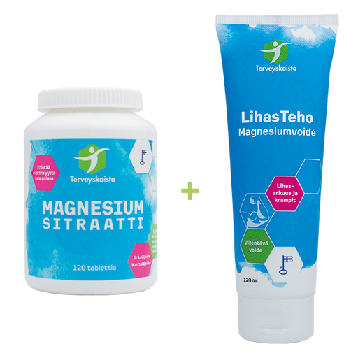 Katso kaikki tiedotMagnesiumsitraatti + LihasTeho Magnesiumvoide 120 ml TARJOUS!