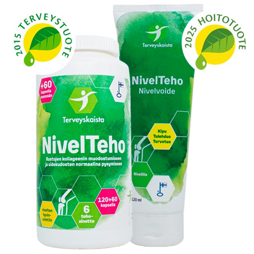 Katso kaikki tiedotNivelTeho 180 kaps. + NivelTeho Nivelvoide 120 ml TARJOUS!
