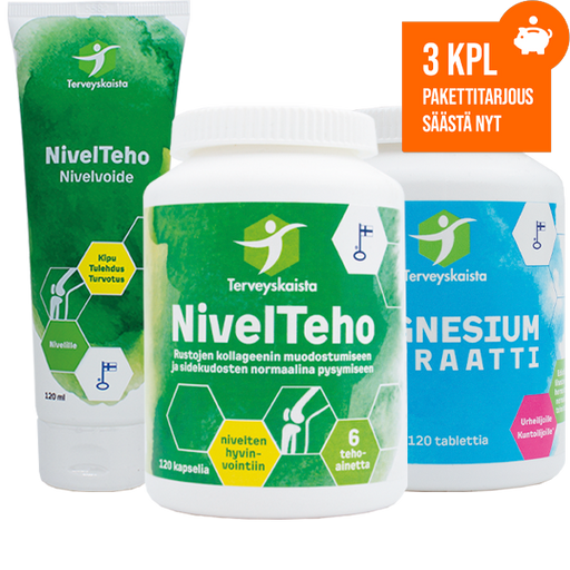 Monipuolinen paketti nivelten ja lihasten hyvinvoinnille. -- Nivelille-paketti – Täydellinen kokonaisuus niveltesi hyvinvoinnille! Huolehdi nivelte...